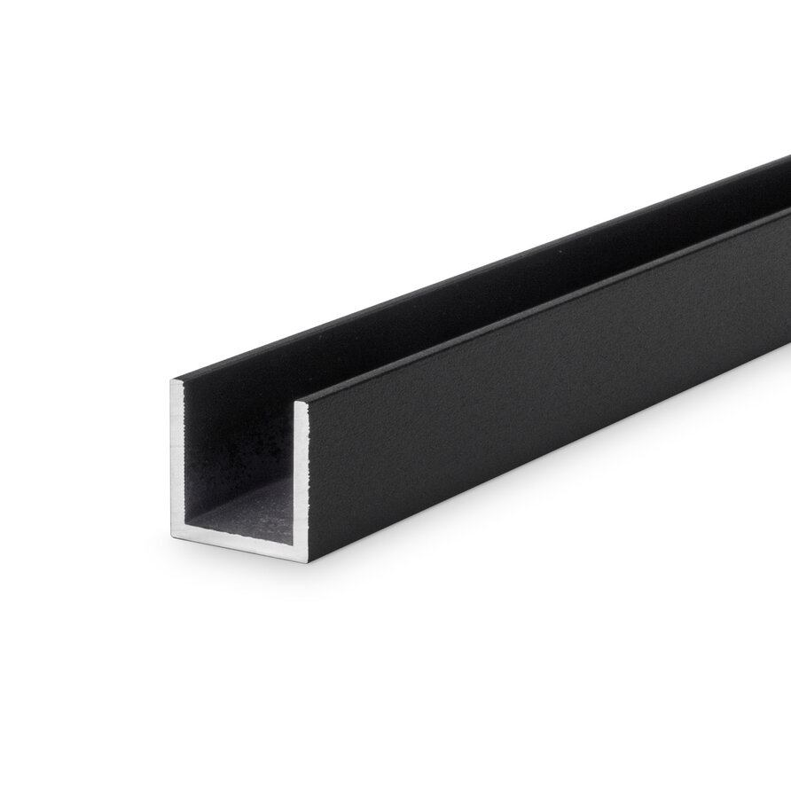 Schwarze pulverbeschichtete U-Profile werden vielfältig als Profilleiste (U-Leiste) für Kantenschutz eingesetzt und häufig auch als Abdeckleiste oder Abschlussleiste für sichtbare Anwendungen verwendet. Ihr Aluprofil wird in unserer eigenen Fachwerkstatt von erfahrenen Handwerkern individuell nach Maß gefertigt. Erhältlich in Längen von 100 mm bis 2950 mm, millimetergenau zugeschnitten. Immer das passende schwarze U-Aluprofil bei Aluminium-Experte!